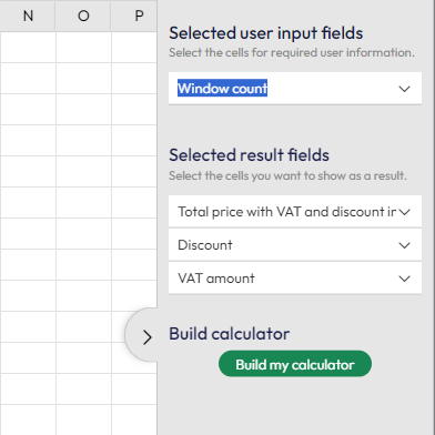 After selecting all the fields you want to include in the calculator, click the "Build my calculator" button, which will then create the calculator: